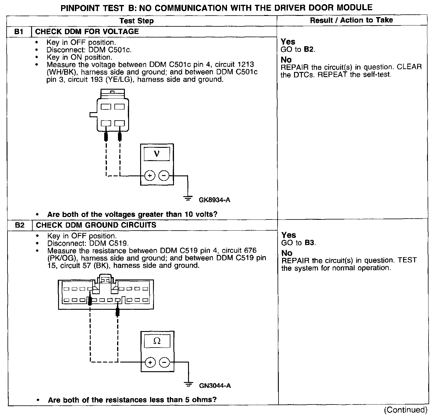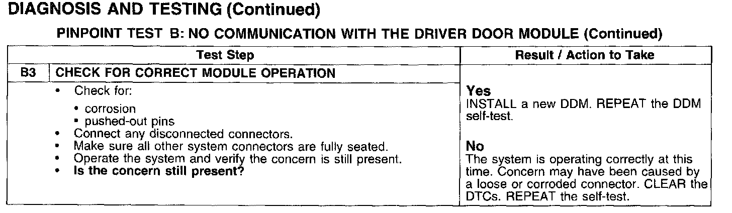 PINPOINT TEST B: NO COMMUNICATION WITH THE DRIVER DOOR MODULE