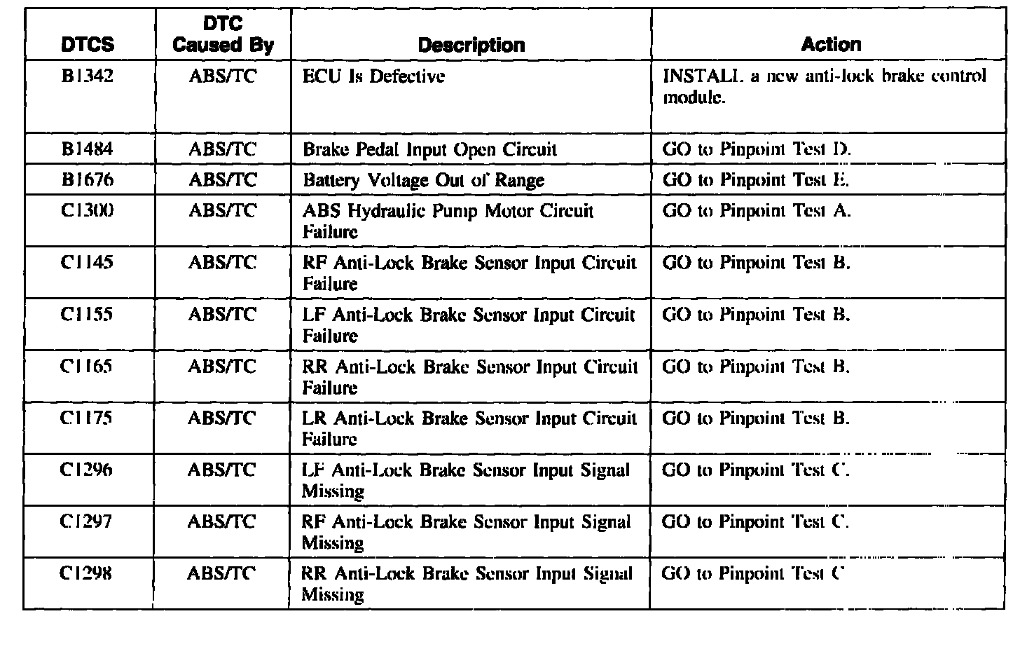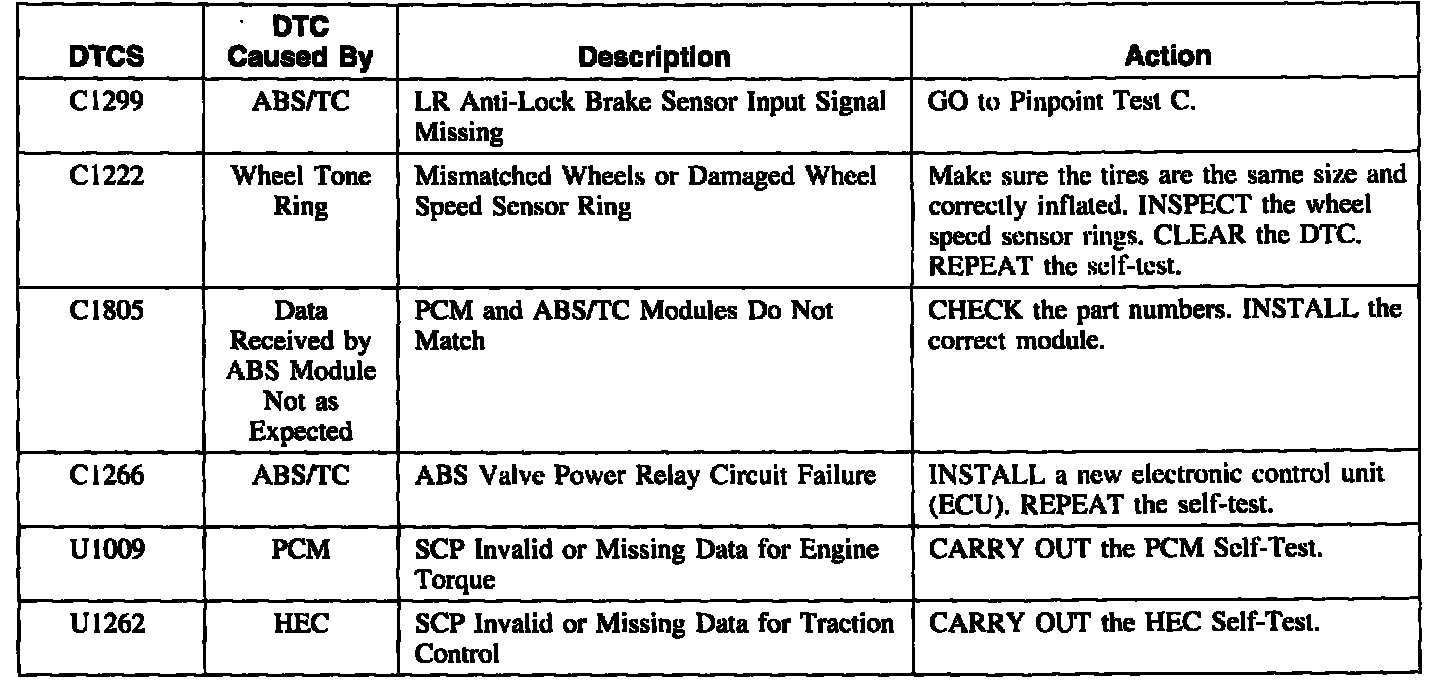 Anti-Lock Brake Control Module Diagnostic Trouble Code (DTC) Index