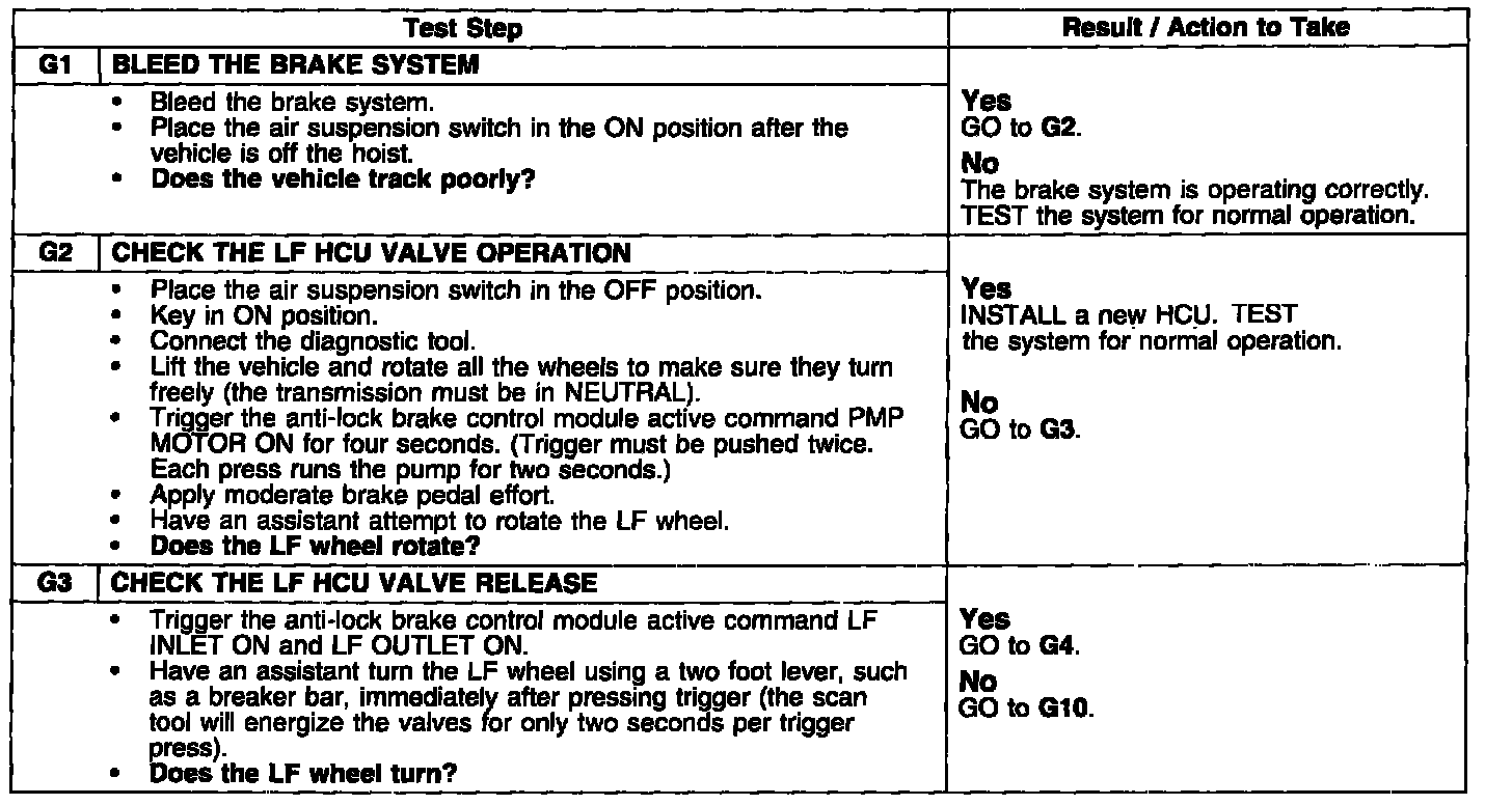 PINPOINT TEST G: POOR VEHICLE TRACKING DURING ANTI-LOCK FUNCTION