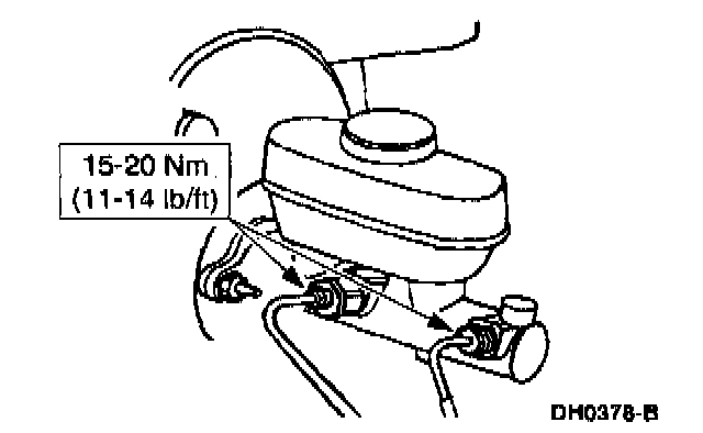 7. If the brake master cylinder has been primed at the bench, install it in the vehicle.