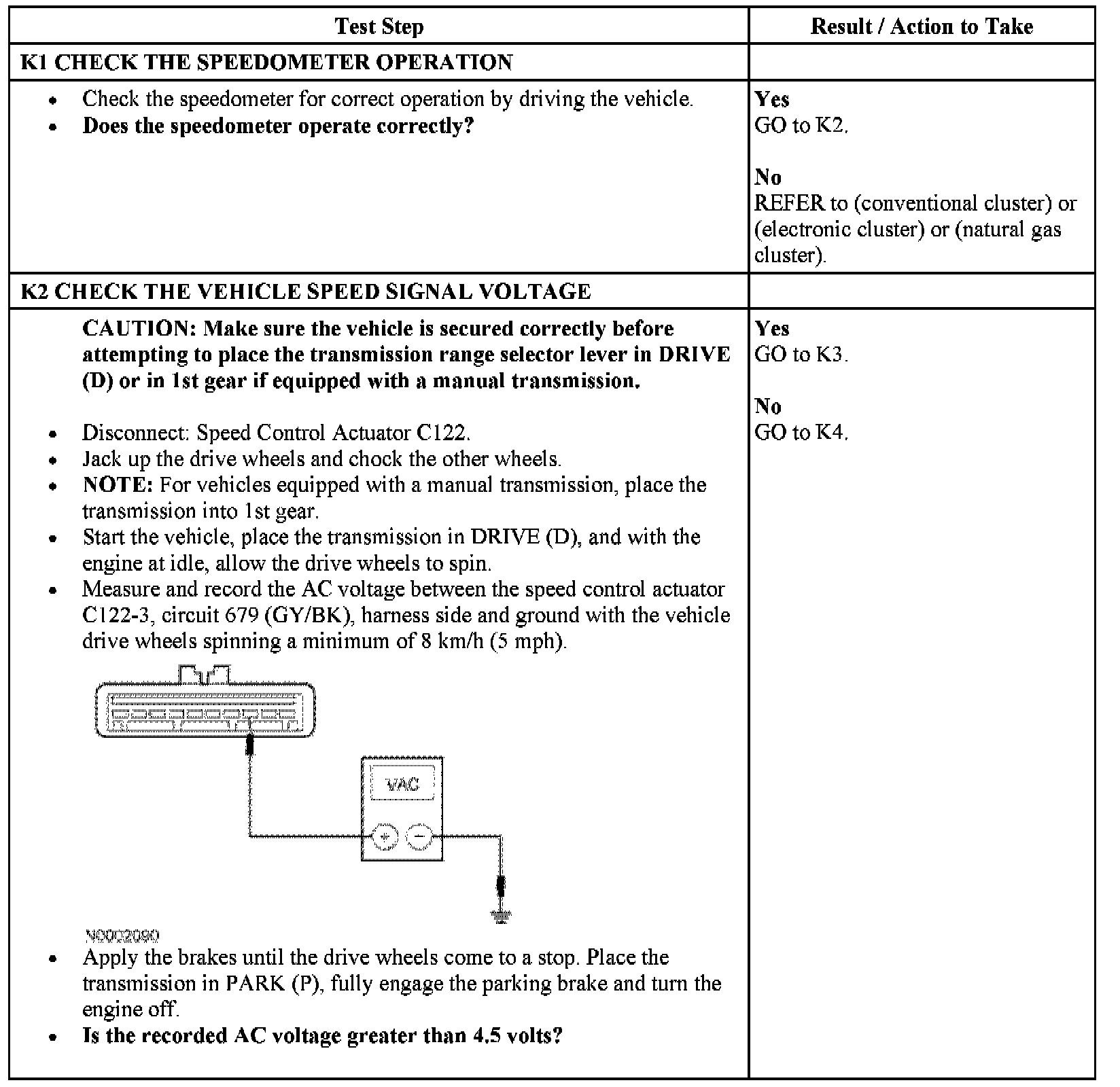 PINPOINT TEST K: FLASH WITH LAST SWITCH PRESSED, DYNAMIC PULL OCCURS AT THROTTLE AND SPEED CONTROL INOPERATIVE (ELECTRONIC CLUSTER)