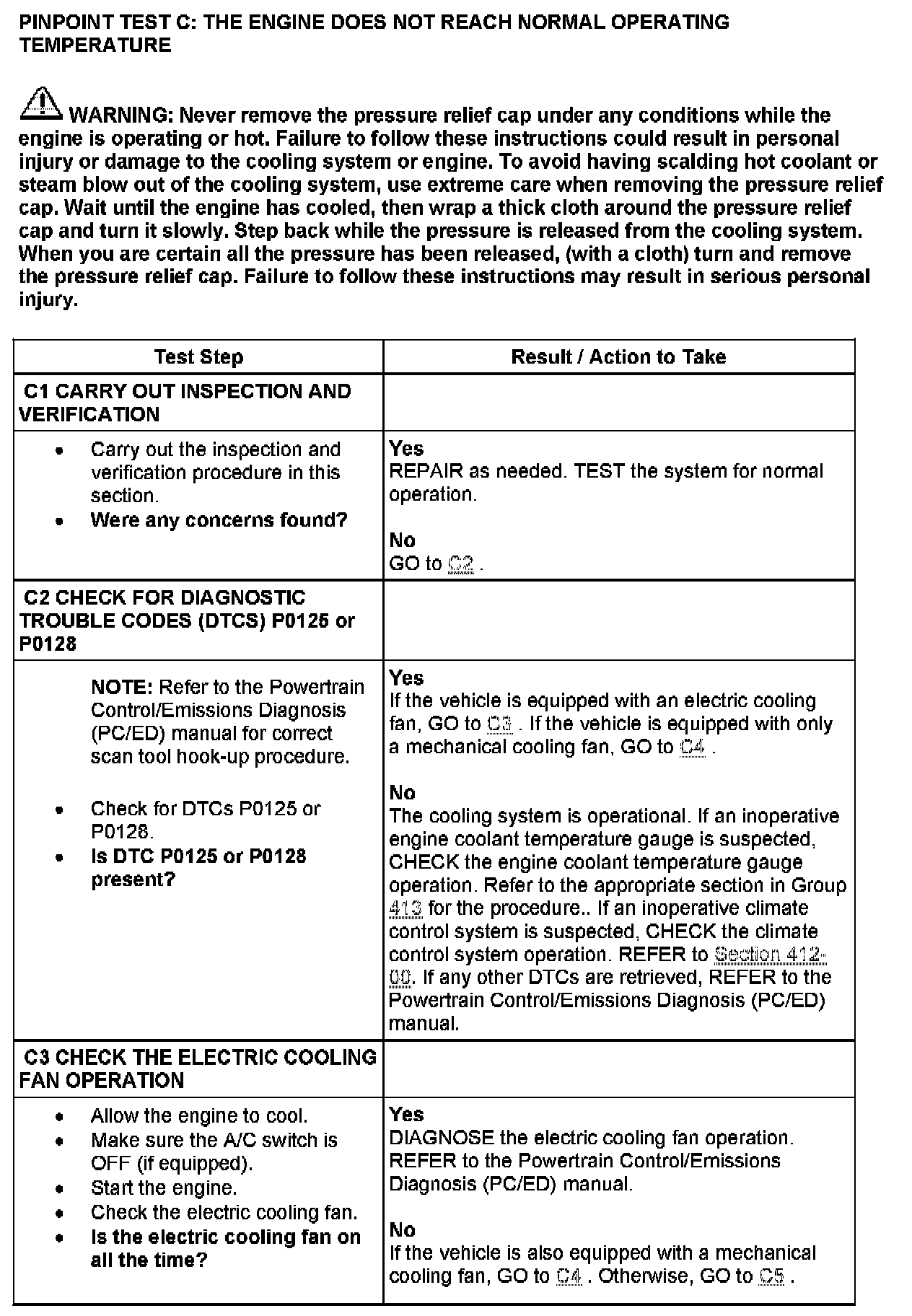 PINPOINT TEST C: THE ENGINE DOES NOT REACH NORMAL OPERATING TEMPERATURE