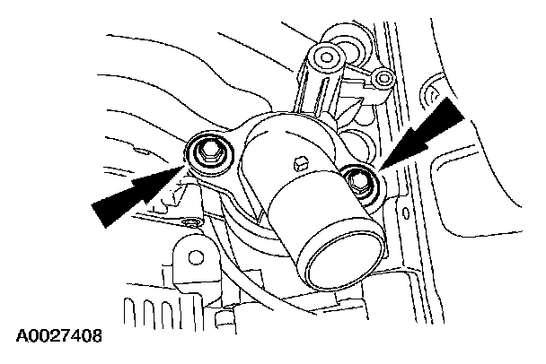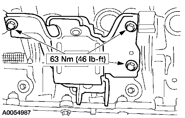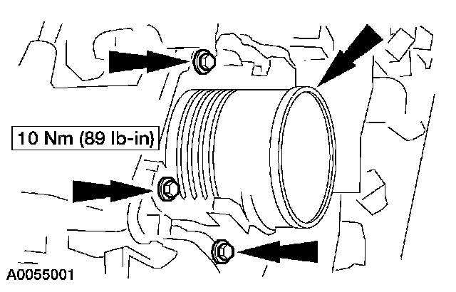 55. Install the coolant outlet adapter and loosely install the bolts.
