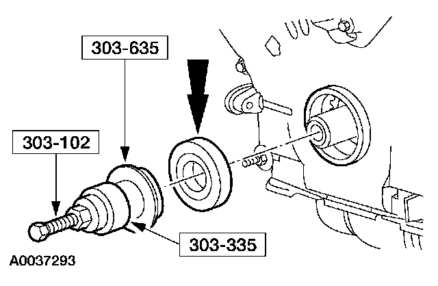40. NOTE: Use special tool 303-009 or suitable strap wrench to hold the pulley.