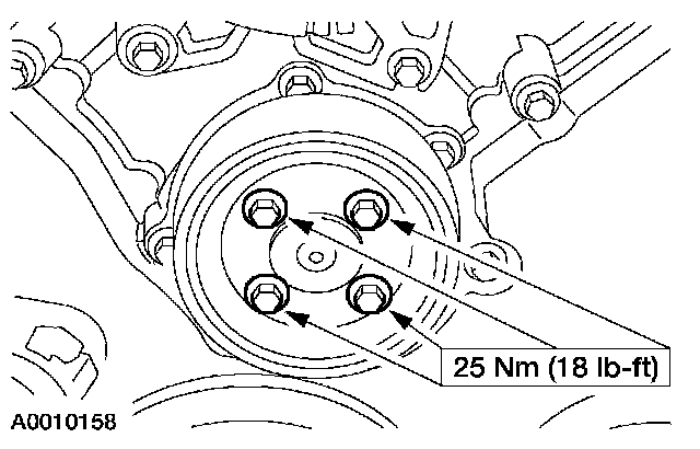 41. Position the coolant pump pulley on the water pump and install the bolts.