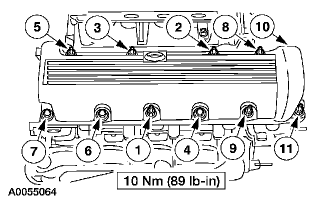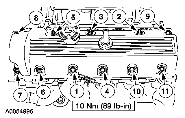 44. Install the gasket into the valve cover and position on the cylinder head. Tighten the bolts in the sequence shown.