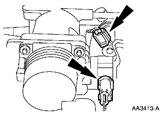 65. Connect the electrical connector to the idle air control (IAC) valve and the throttle position (TP) sensor.