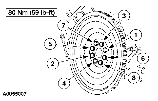 84. Position the flexplate and install the bolts in the sequence shown.