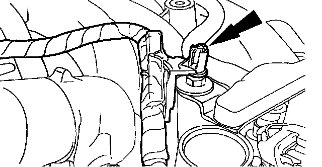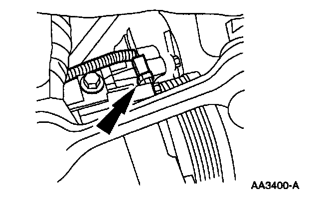 ^ Disconnect the pin-type retainer from the A/C compressor bracket.