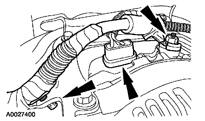 22. Disconnect the generator cable, the electrical connector and the harness location retainer.