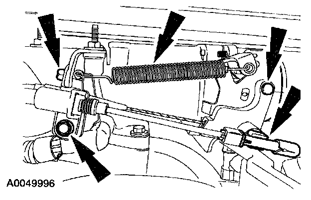 17. Disconnect the accelerator cable, the speed control actuator cable, the throttle return spring and the cable retaining bolts.