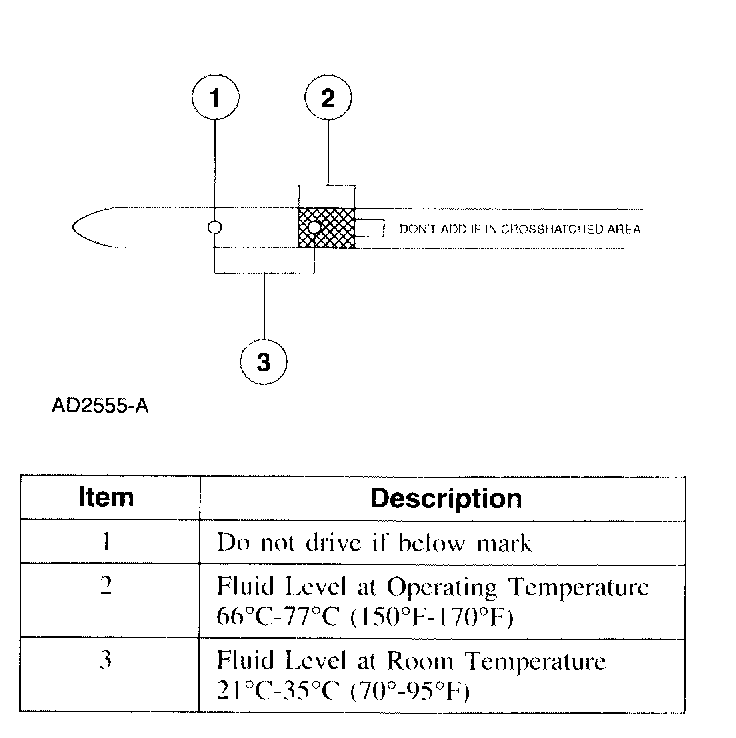 NOTE: The fluid level reading on the indicator will differ from operating and ambient temperatures. The correct reading should be within the normal operating temperature range.