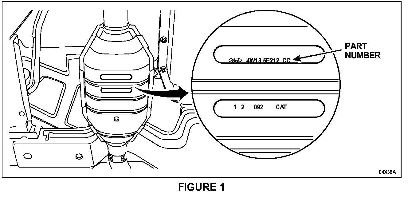 3. If the part number on the right-hand catalytic converter is 4W13-5E212-CC, it must be replaced. Refer to the Attachment II for the service number.