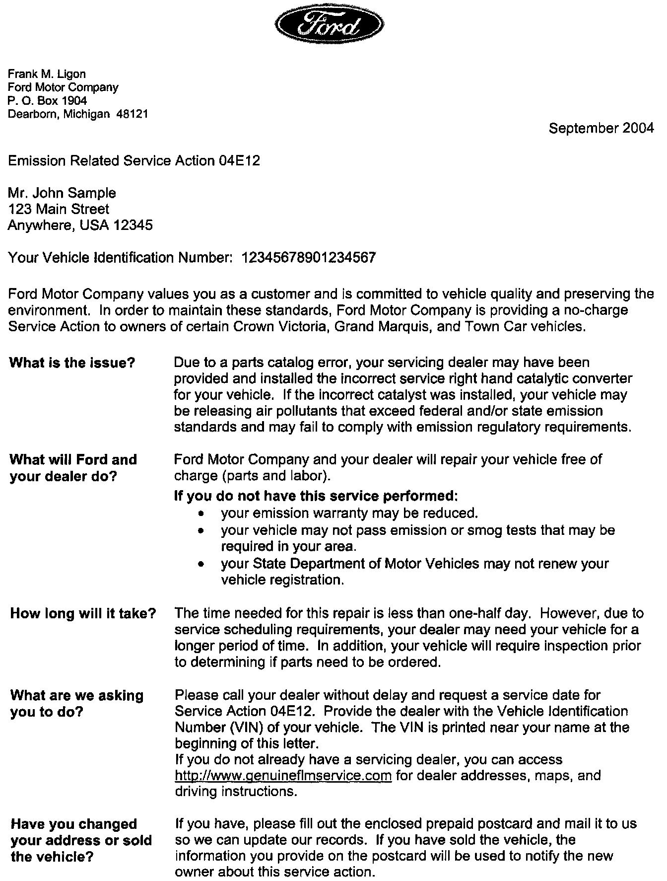 Recall - Incorrect R/H Catalytic Converter Installed