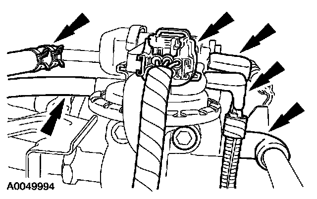 15. Disconnect the vacuum lines and the electrical connector and position aside.