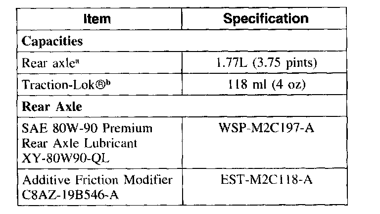General Specificationsa Service refill capacities are determined by filling the axle 6.3 mm (1/4 in.) to 14.3 mm (9/16 in.) below the bottom of the filler hole. The vehicle must be on a level surface.