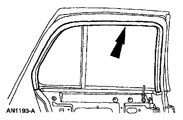 ^ Push the quarter window glass on angle as shown to seat fully.