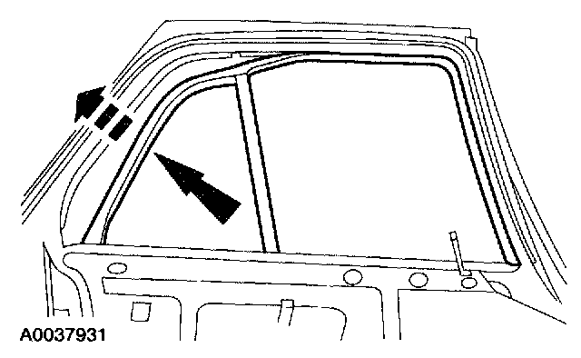 ^ Pull the quarter glass forward to loosen the rear door top glass run assembly.
