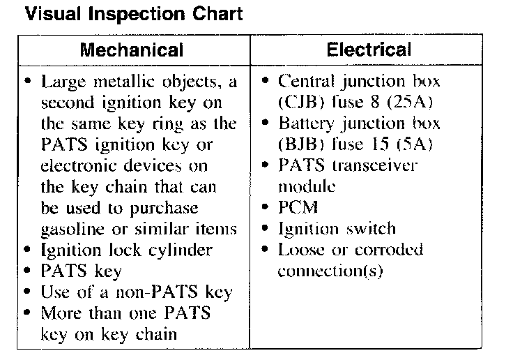 1. Verify the customer concern by operating the system.Visual Inspection Chart: