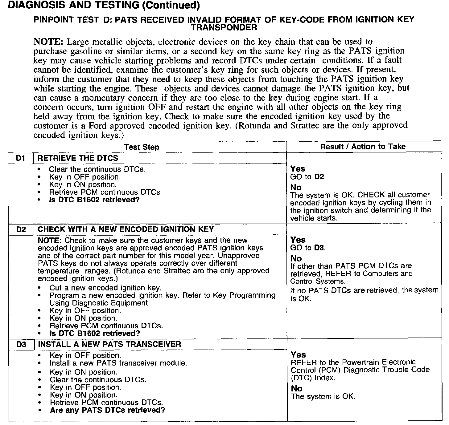 PINPOINT TEST D: PATS RECEIVED INVALID FORMAT OF KEY-CODE FROM IGNITION KEY TRANSPONDER