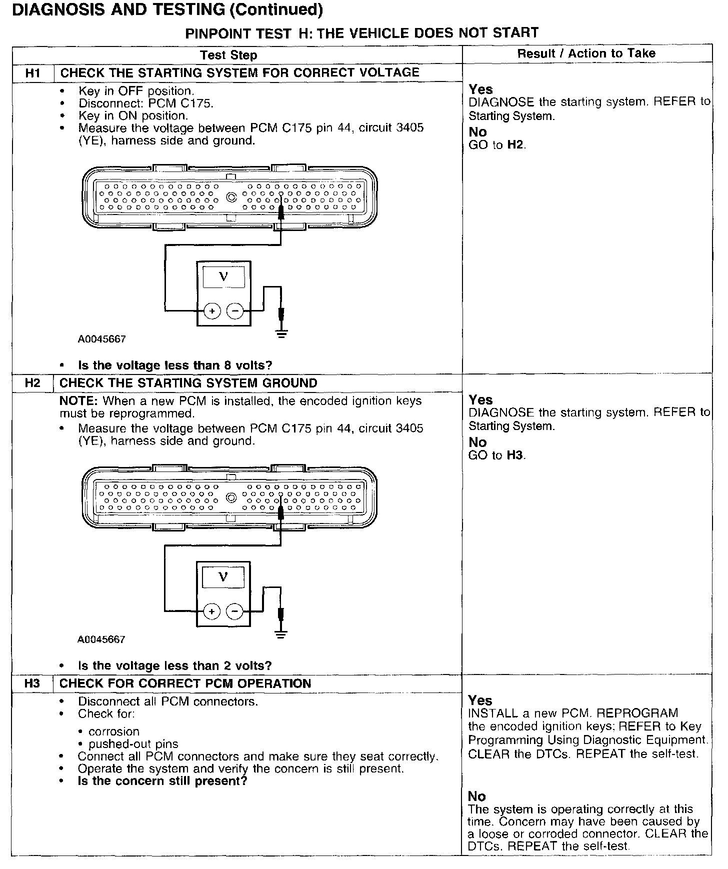 PINPOINT TEST H: VEHICLE DOES NOT START