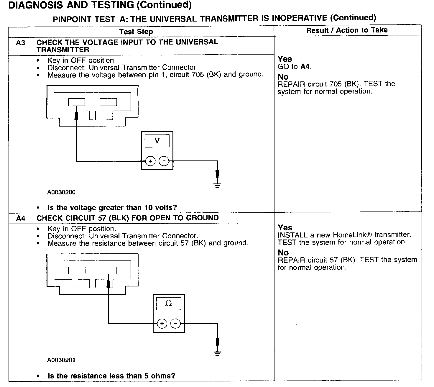 PINPOINT TEST A: THE UNIVERSAL TRANSMITTER IS INOPERATIVE