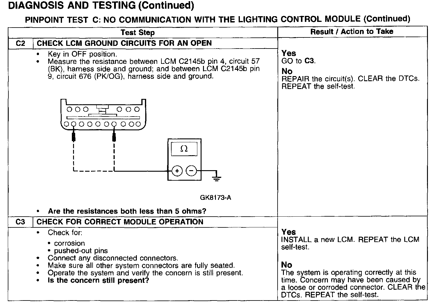 PINPOINT TEST C: NO COMMUNICATION WITH THE LIGHTING CONTROL MODULE (LCM)