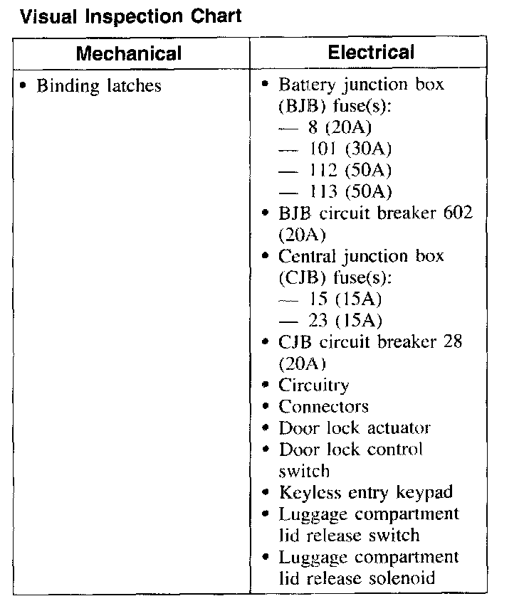 NOTE: Before starting electrical diagnosis, check for mechanical binds by manually operating the door locks. Operate lock system several times from each switch while observing the operation of all door locks. Be sure battery is fully charged.1. Verify the customer concern by operating the system.