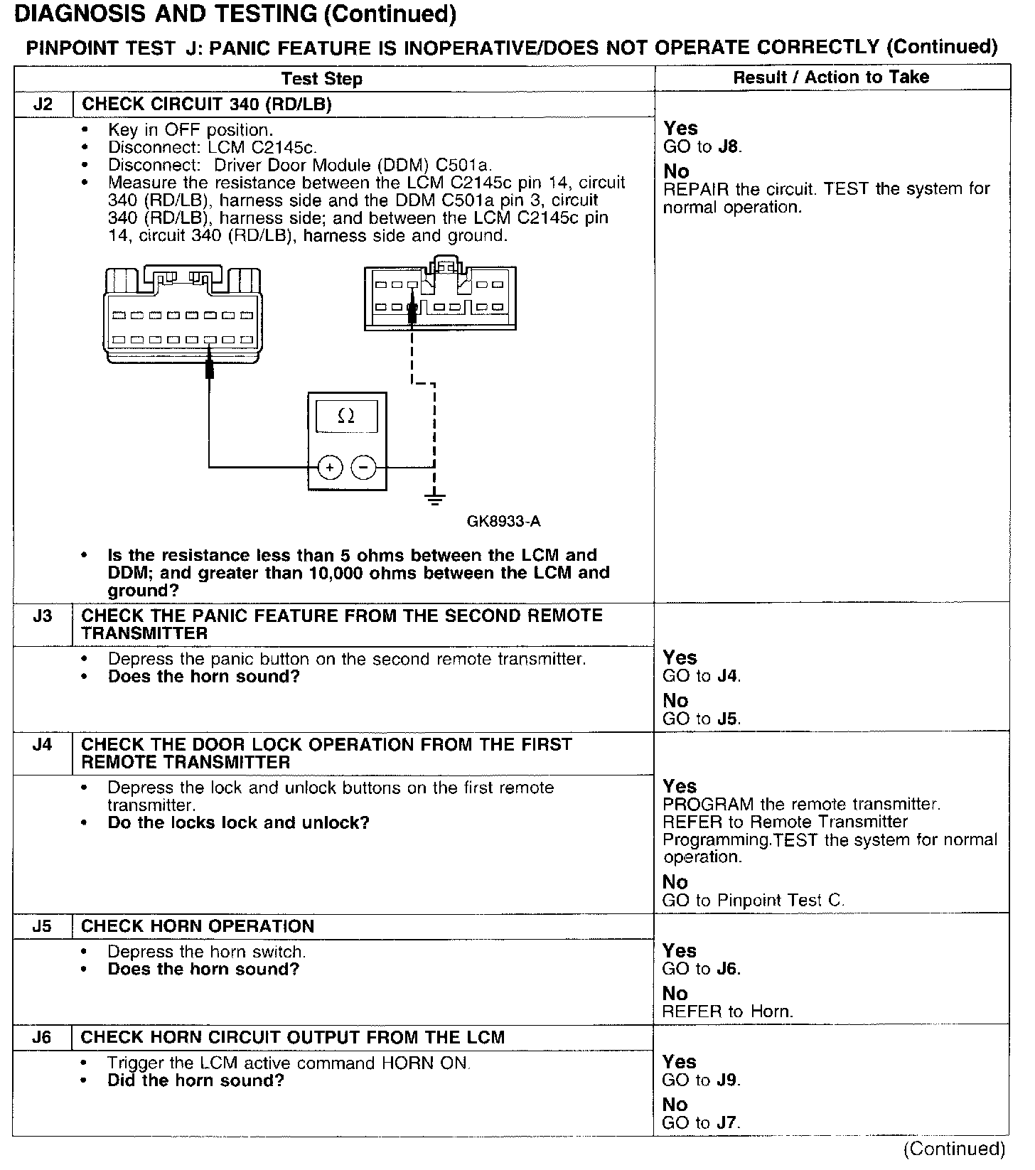 PINPOINT TEST J: THE PANIC FEATURE IS INOPERATIVE/DOES NOT OPERATE CORRECTLY