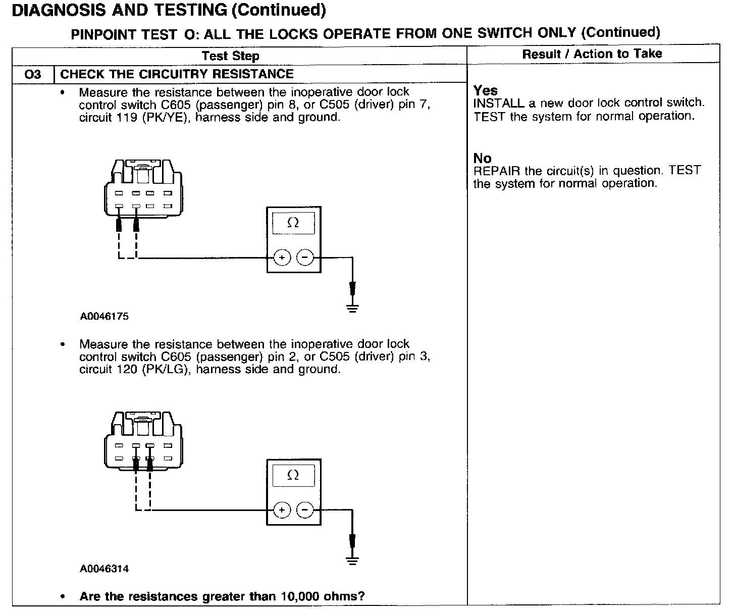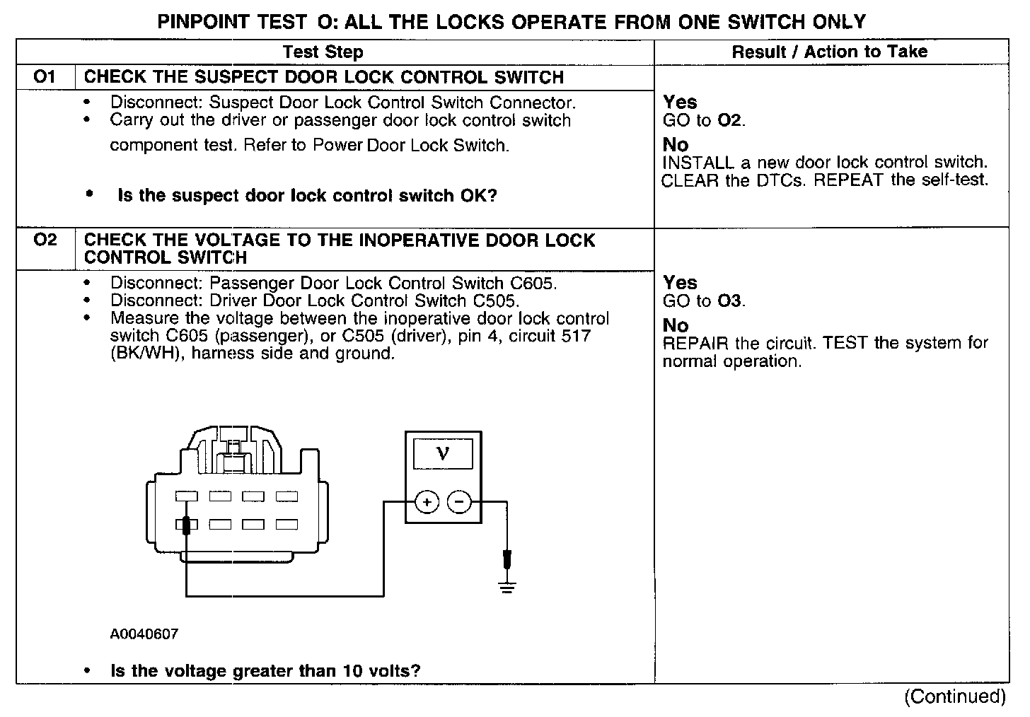 PINPOINT TEST O: ALL THE LOCKS OPERATE FROM ONE SWITCH ONLY