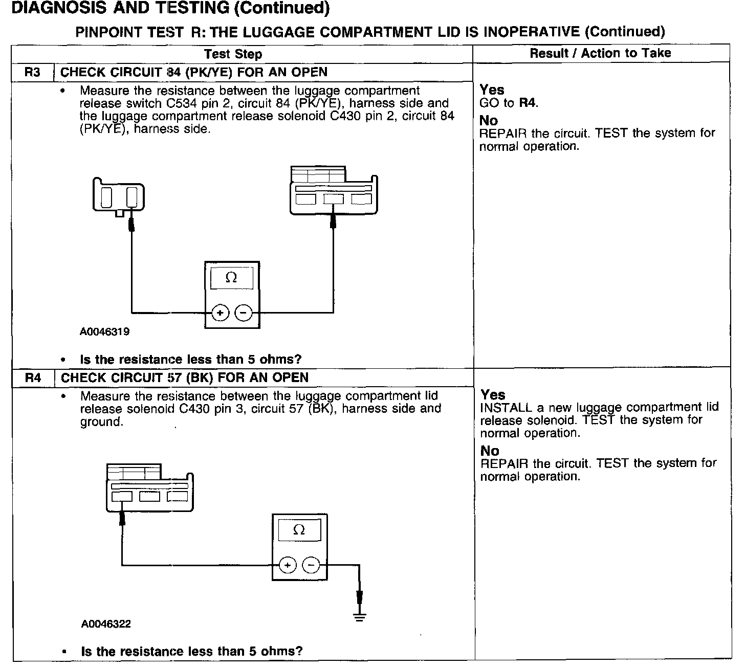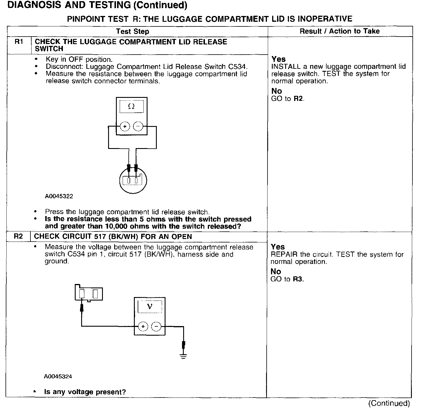 PINPOINT TEST R: LUGGAGE COMPARTMENT LID IS INOPERATIVE