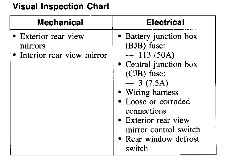 1. Verify the customer concern by operating the system.Visual Inspection Chart: