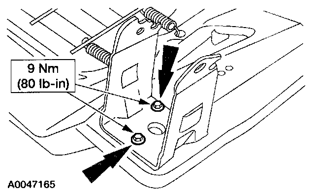 6. Install the armrest bracket and the three (two shown) bolts.