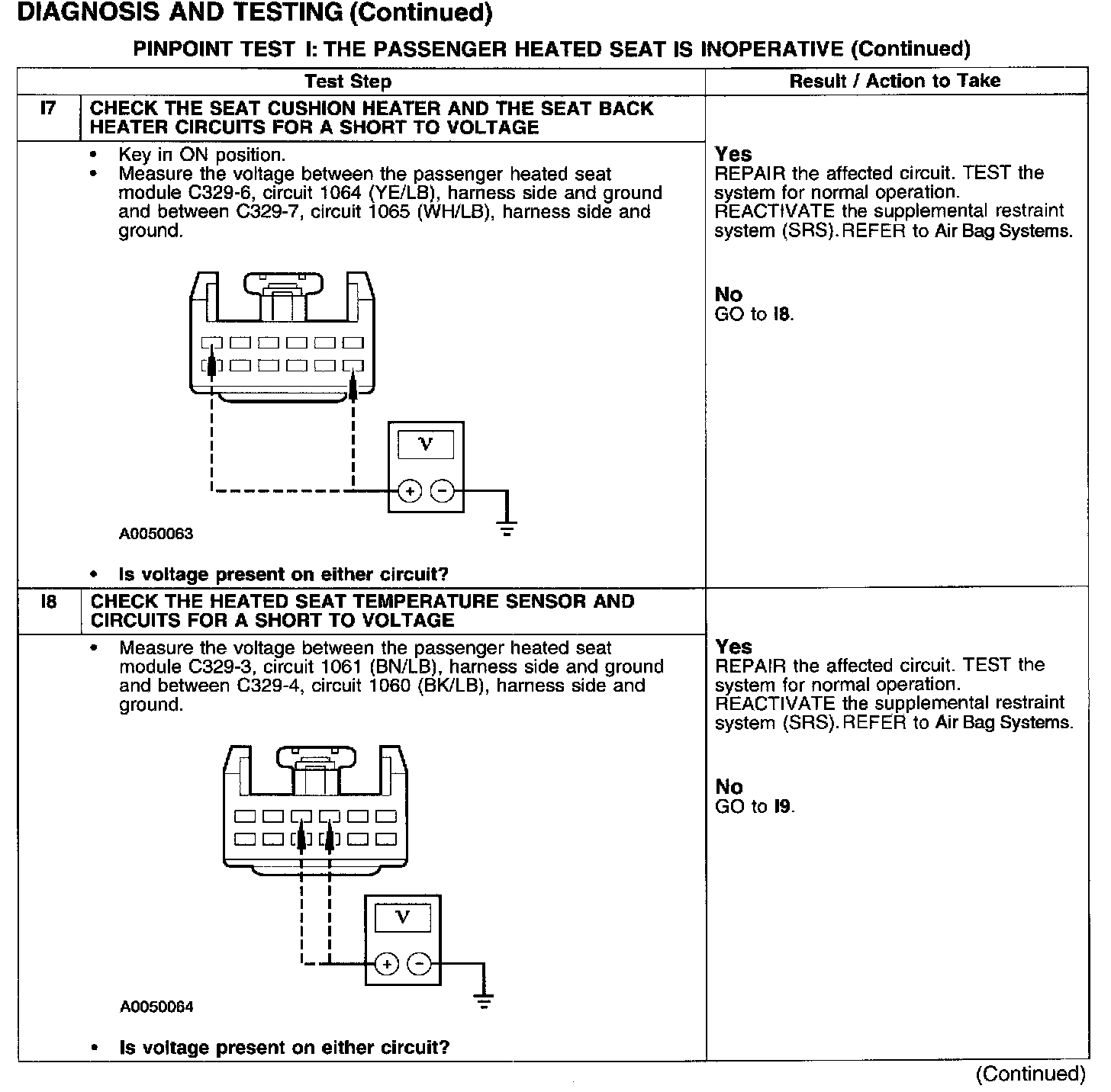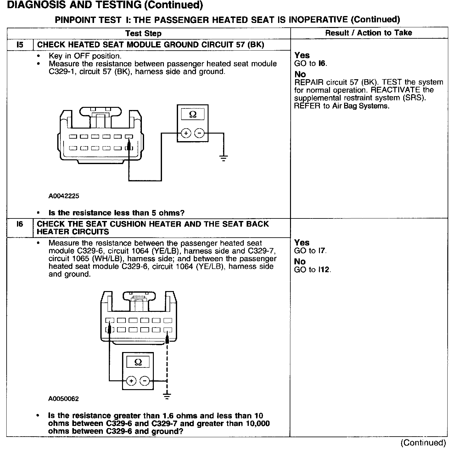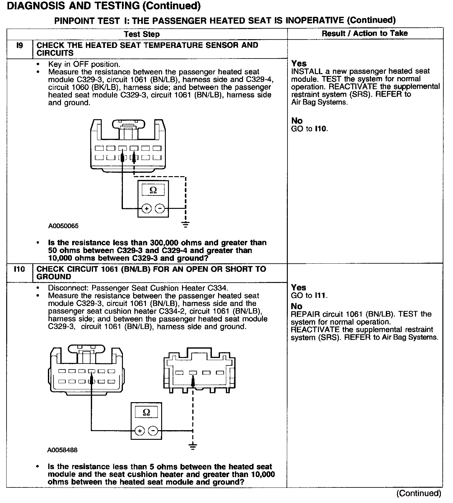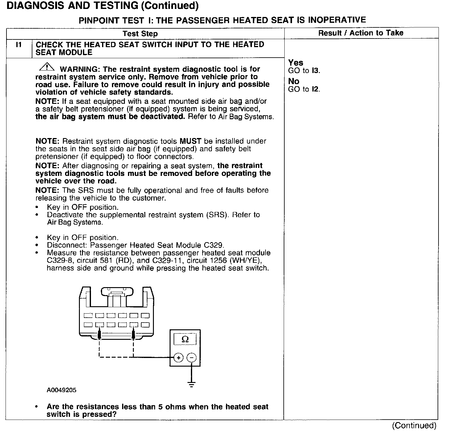 PINPOINT TEST I: THE PASSENGER HEATED SEAT IS INOPERATIVE