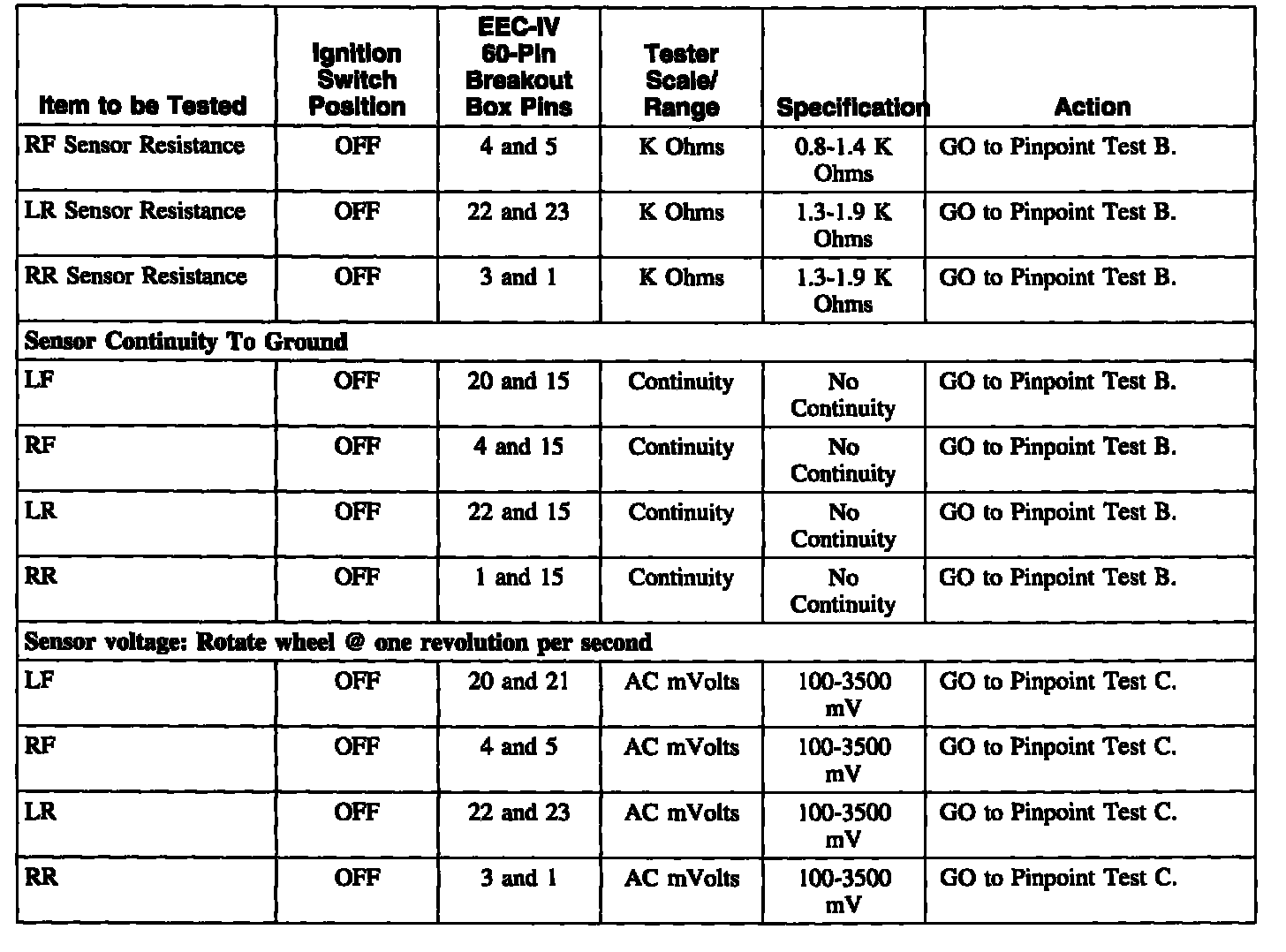 ^ NO RESE,/NOT EQUIP for anti-lock brake control module. GO to Pinpoint Test F. Test F