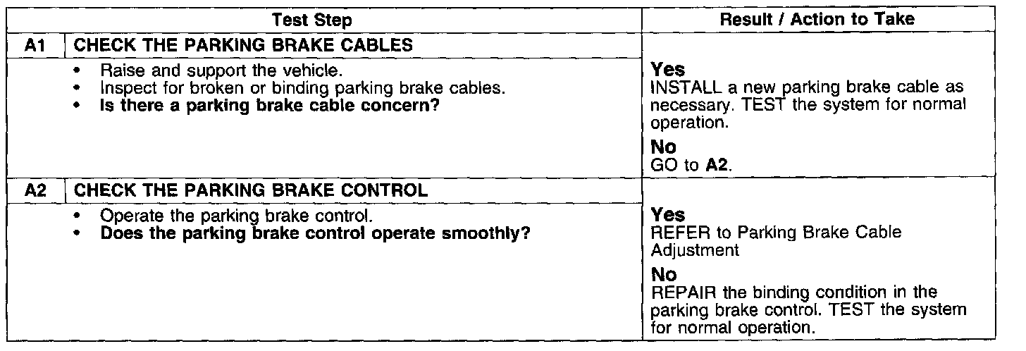 PINPOINT TEST A: THE PARKING BRAKE WILL NOT APPLY