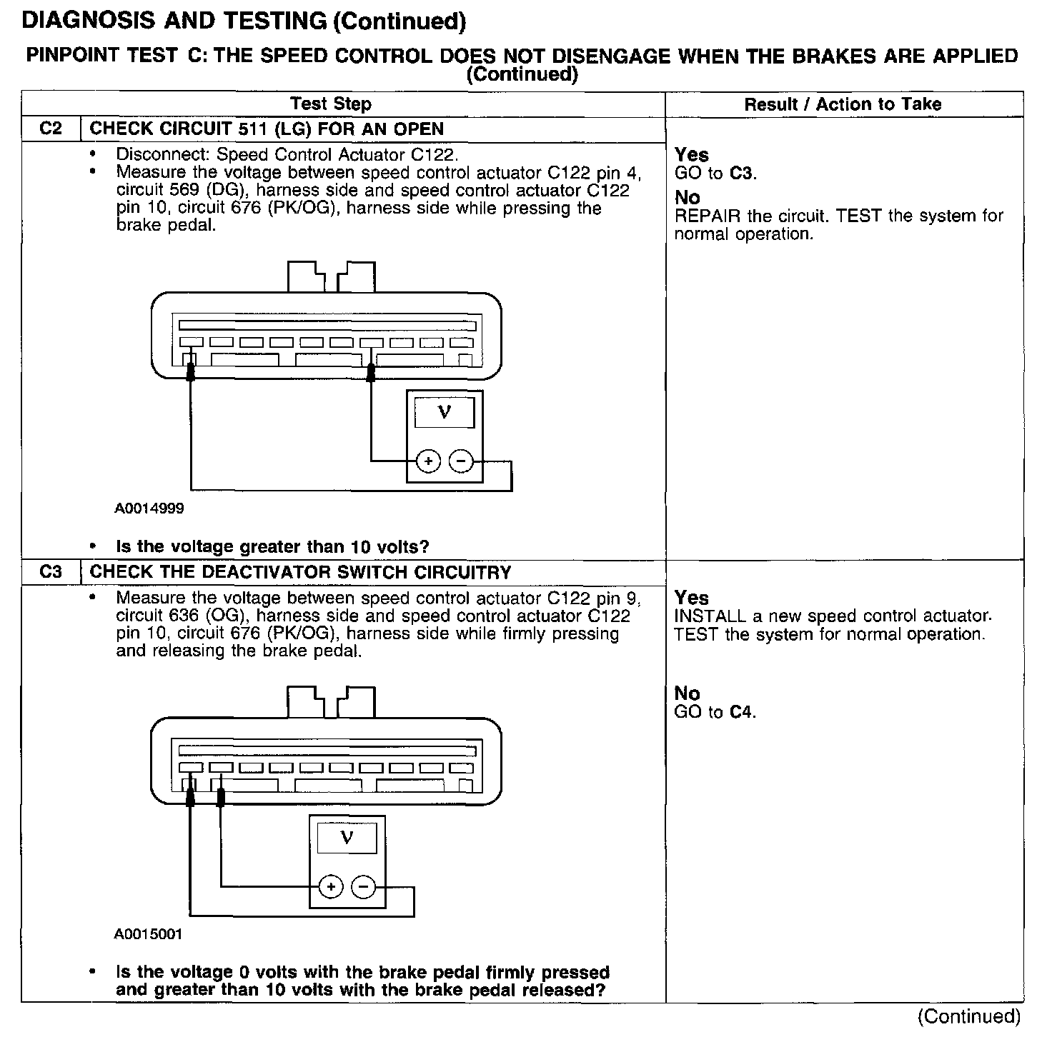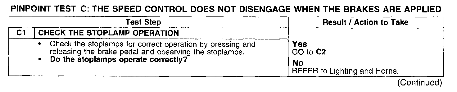 PINPOINT TEST C: THE SPEED CONTROL DOES NOT DISENGAGE WHEN THE BRAKES ARE APPLIED
