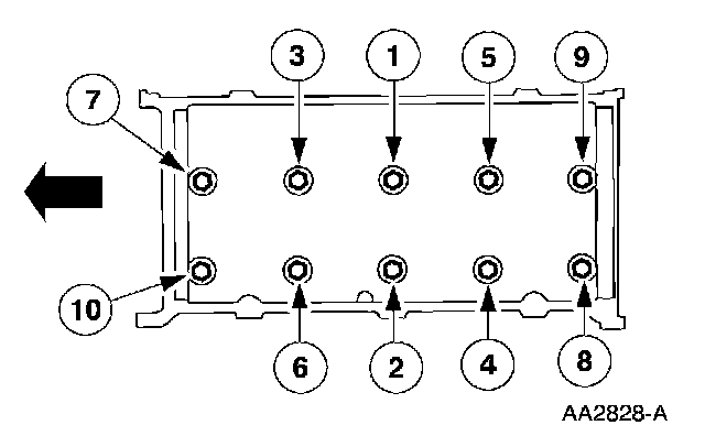 Install the valve covers and tighten the bolts in the sequence shown.