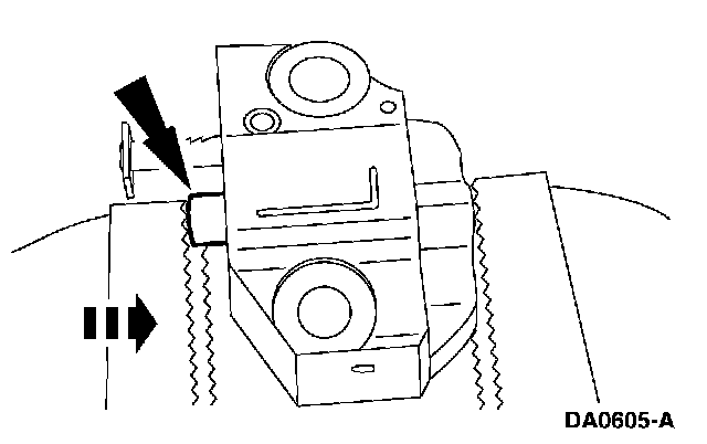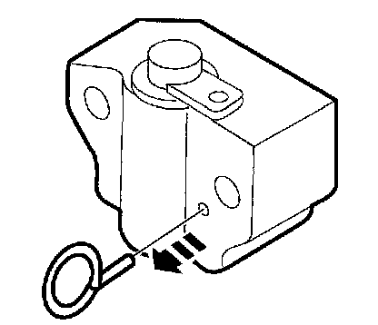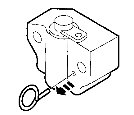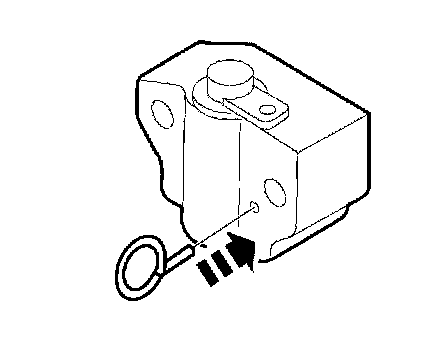 9. Install a paper clip into the hole in the tensioner housing to hold the ratchet assembly and plunger in during installation.