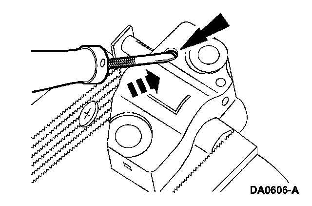 7. Using a small screwdriver or pick, push back and hold the ratchet mechanism.