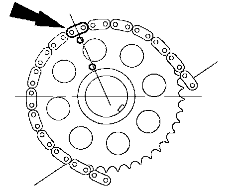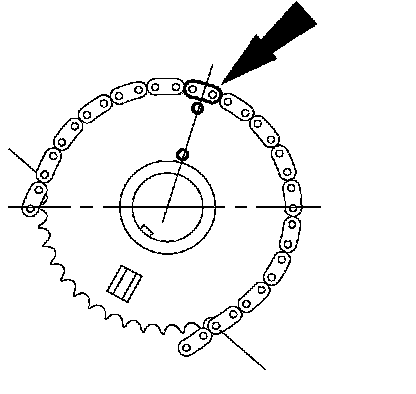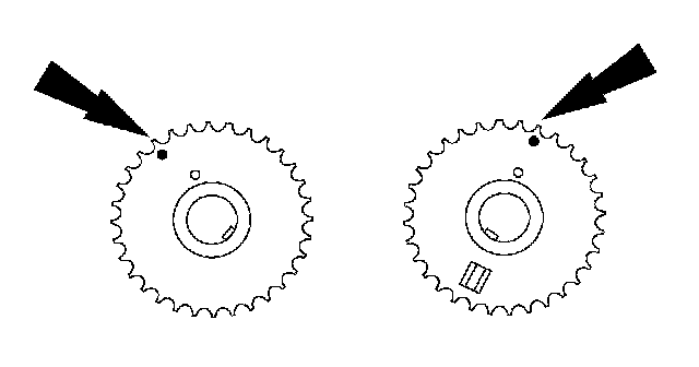 13. Rotate the LH camshaft timing sprocket until the timing mark is approximately at the 12 o'clock position. Rotate the RH camshaft timing sprocket until the timing mark is approximately at the 11 o'clock position.