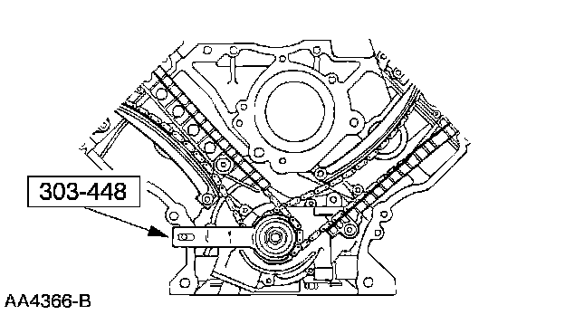 14. CAUTION: Unless otherwise instructed, at no time when the timing chains are removed and the cylinder heads are installed is the crankshaft or camshaft to be rotated. Severe piston and valve damage will occur.