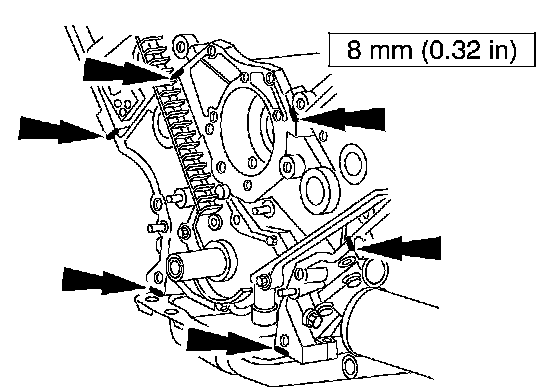 31. Install the engine front cover and tighten the bolts in the sequence shown.