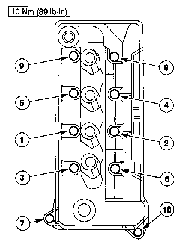 9. Tighten the valve cover fasteners in the sequence shown.