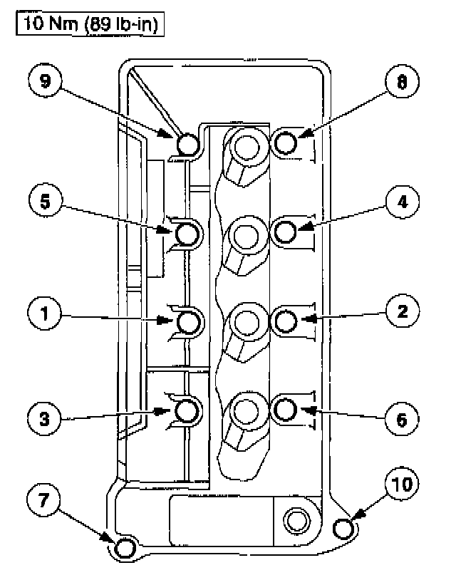 8. NOTE: If the valve cover is not secured within four minutes, the sealant must be removed and the sealing area cleaned with metal surface cleaner. Allow to dry until there is no sign of wetness, or four minutes, whichever is longer. Failure to follow this procedure can result in future oil leakage.