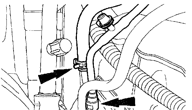 3. Disconnect the coolant hose and the Evaporative Emissions (EVAP) tube, and position aside.
