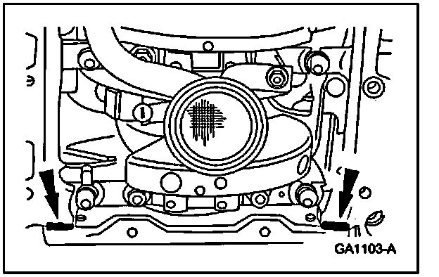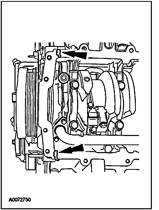 3. Apply silicone gasket and sealant at the engine front cover-to-cylinder block mating surface