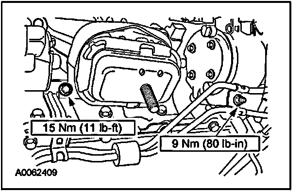 6. Position the transmission cooler tubes and install the retainers.