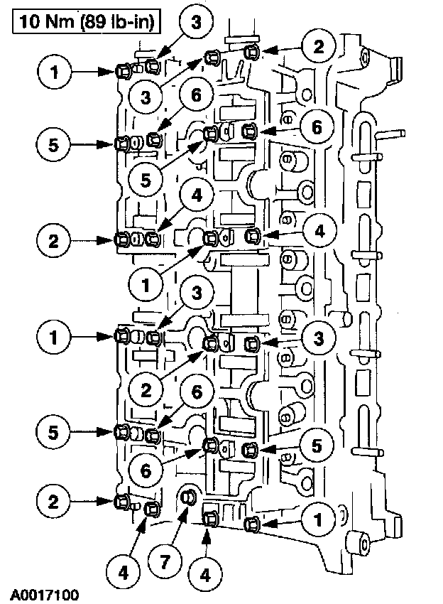 13. CAUTION: The outer bolts on the outer cam bearing cap (exhaust) are longer and must be returned to the same location or engine damage can occur.