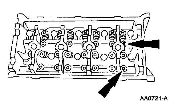 1. CAUTION: Do not place the cylinder head flat on the bench; the valves will bend. Before disassembly begins, mark the valve position on the face of each valve being removed. The valves must be re-installed into the same positions.